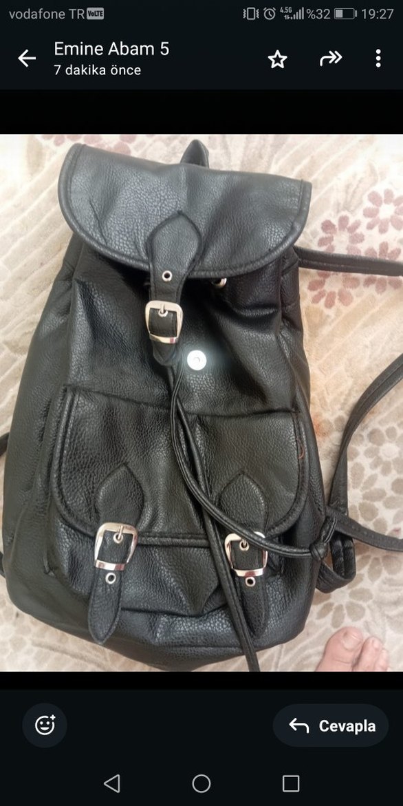 Siyah Deri Tokalı Kadın deri Sırt Çantası
