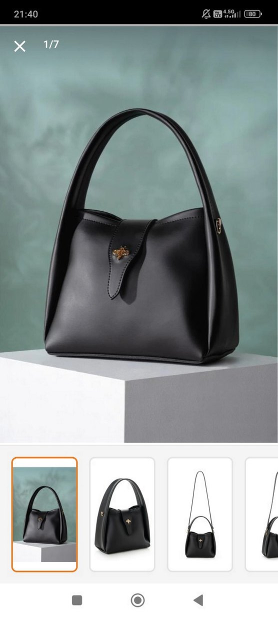 Siyah deri kadın çantası, tokalı kapanışı ve minimalist tasarımıyla günlük kullanıma uygun çağdaş bir şıklık sunar. Düz ve desensiz yüzeyi klasik zarafet taşır.