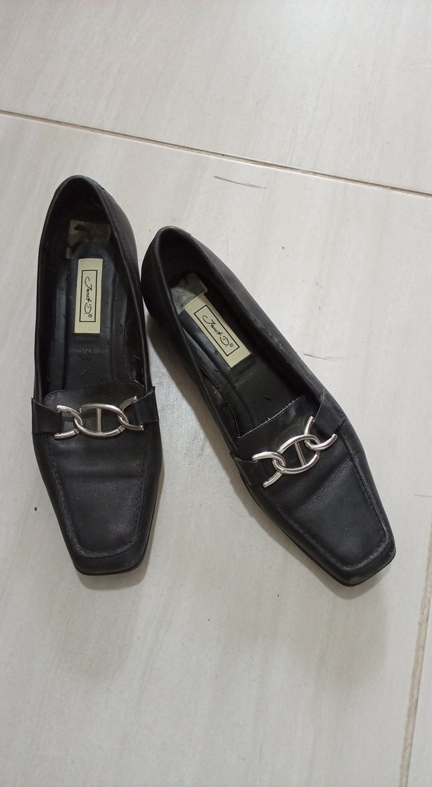 Siyah Deri Tokalı Kadın Klasik Ayakkabı