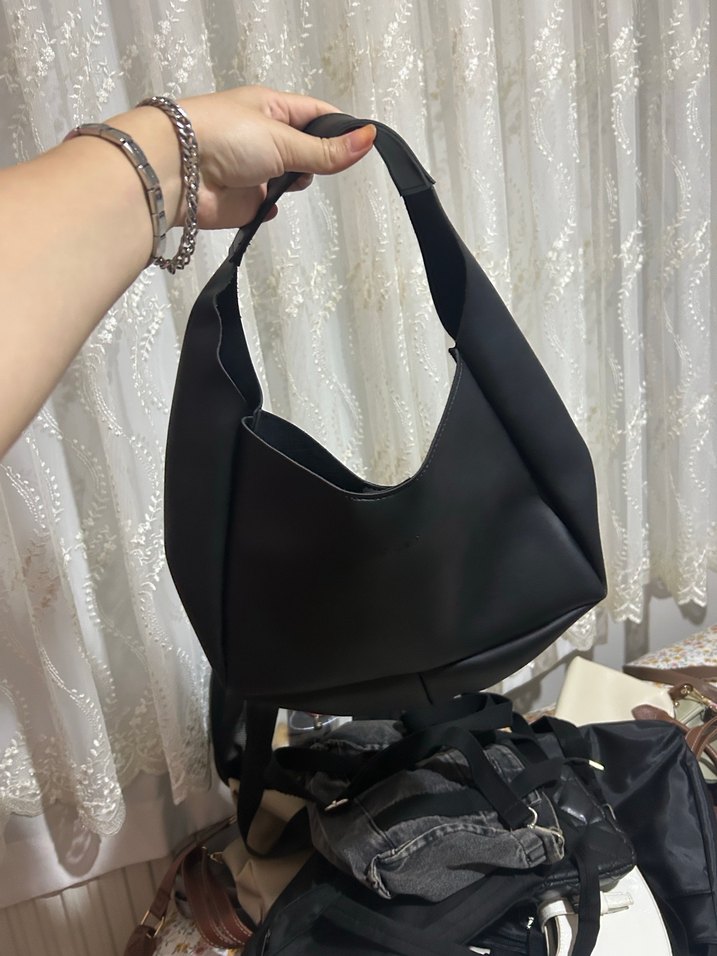 Siyah deriden üretilmiş, tokalı ve desen içermeyen bu kadın omuz çantası günlük kullanım için uygundur. Trendy casual ve Paris sokak modasına uyum sağlar. küçük ayrı makyaj çantası var