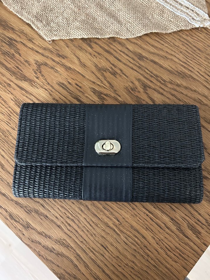 Tokalı kapamalı siyah kadın portföy çanta, dokulu ve pürüzsüz yüzey detaylarıyla. Açık hava kullanımı için uygun, klasik bohem tarzda.