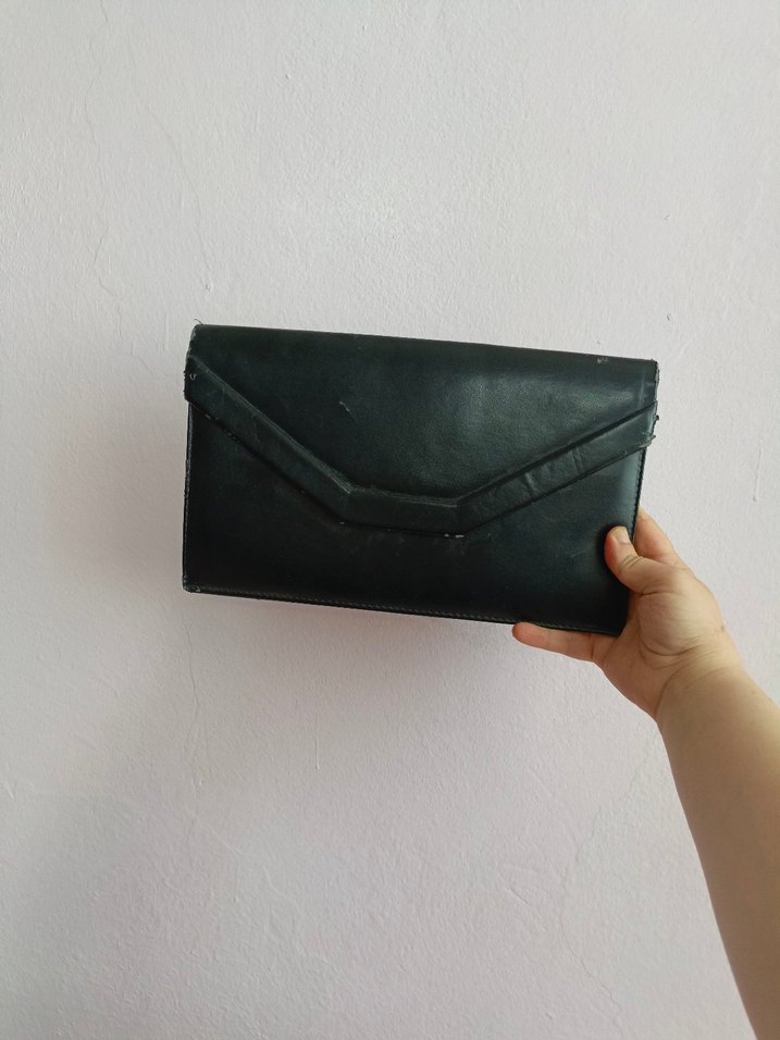 Siyah deriden yapılmış, tokalı detaylı kadın portföy çanta. Minimalist ve gotik tarzda, sade ve temel tasarıma sahip, ofis kullanımı için uygun.