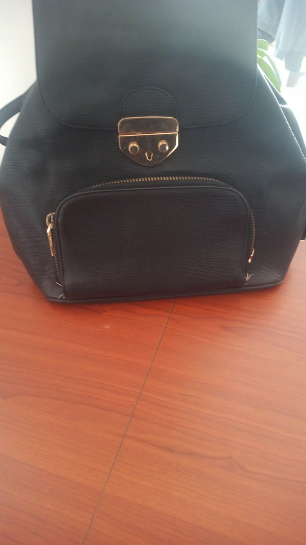 Bu siyah deri sırt çantası parlak görünüme ve tokalı kapama özelliğine sahiptir. Minimalist, desensiz tasarımı günlük kullanım için uygundur, klasik şıklık ve gotik tarzı yansıtır. Mango markalidir