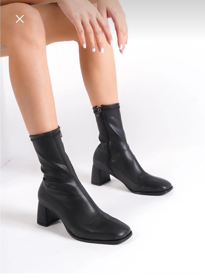 Siyah Deri Tokalı Kadın Topuklu Bot - Görsel 1
