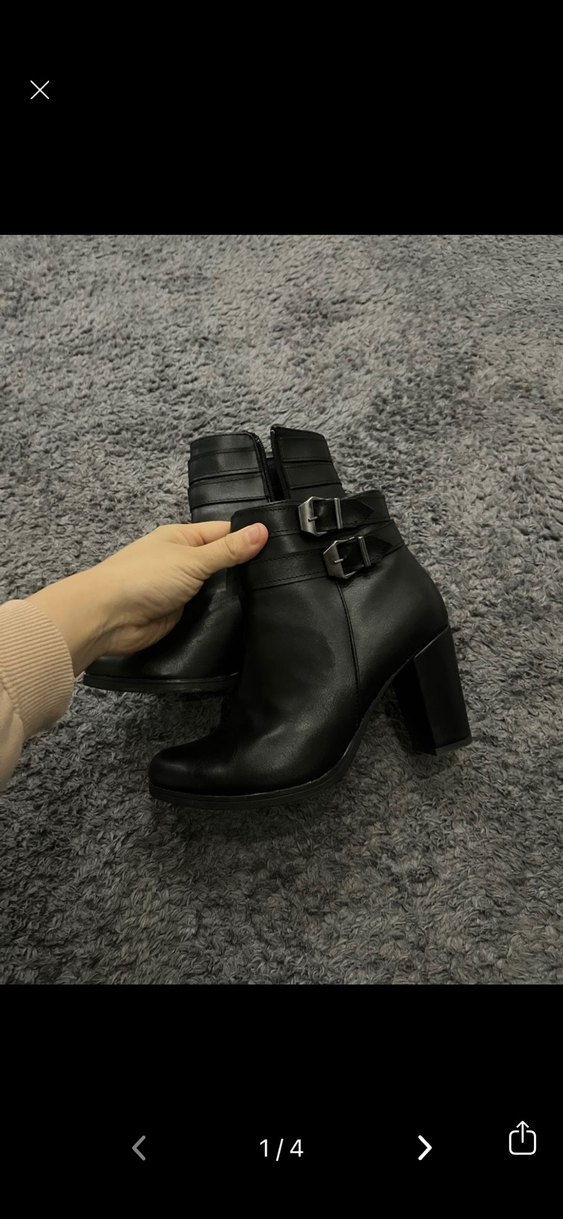 Siyah Deri Tokalı Kadın Topuklu Bot