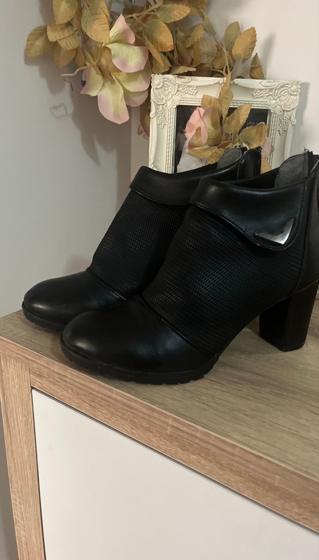 Siyah deri, tokalı ve kalın topuklu kadın botları, çağdaş sokak stilini yansıtır. Günlük kullanıma uygundur. Marka temsilidir
