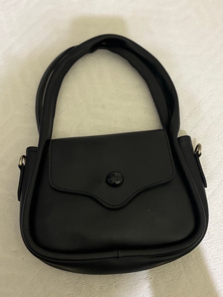 Siyah deri tokalı kapaklı, minimalist ve gotik tarzda kadın çantası. Düz ve desensiz tasarımıyla günlük kullanıma uygundur.
