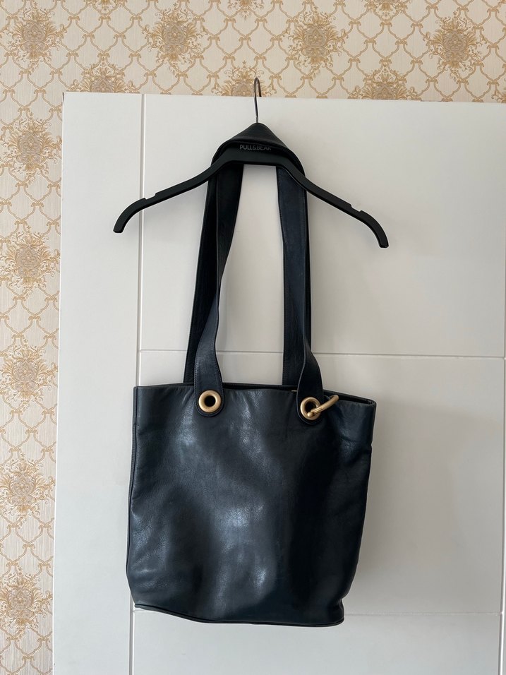 Siyah Deri Tokalı Minimalist Kadın Çanta