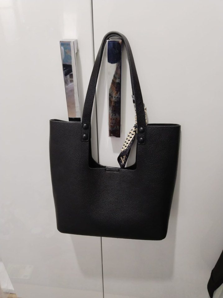 Minimalist tasarımlı siyah deri kadın çanta, tokalı detay ve baskılı desen içerir. Trendy rahat sokak stili için uygundur.