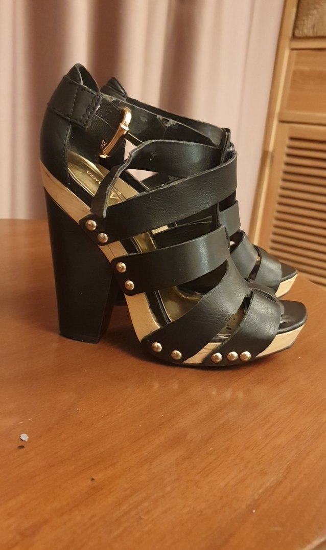 Siyah Deri Tokalı Platform Topuklu Kadın Ayakkabı