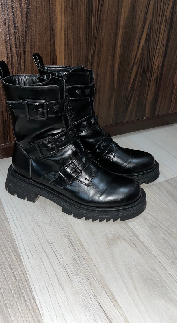 Siyah Deri Tokalı Punk Tarzı Kadın Bot