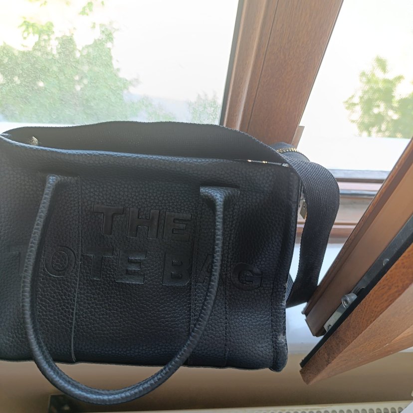 Siyah deri, tokalı, baskılı kadın çanta. Sokak stiline uygun, günlük kullanıma ve trend rahat tarza uygun.