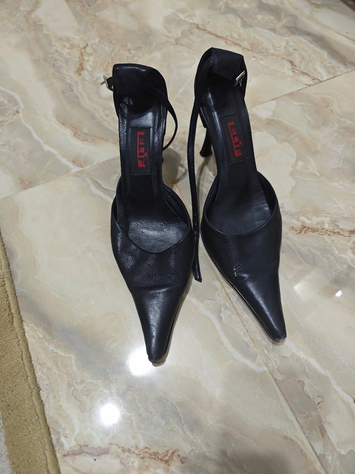 Siyah Deri Tokalı Stiletto Kadın Ayakkabı