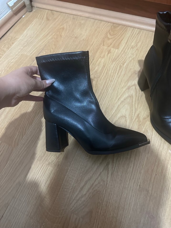 Sıfır ürün hiç kullanılmadı yeni Siyah deri, blok topuklu tokalı bayan bot, cesur ve gotik tarz için uygun günlük kullanıma uygundur.