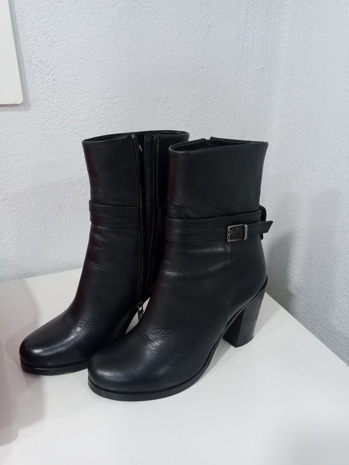 Siyah Deri Tokalı Topuklu Kadın Bot