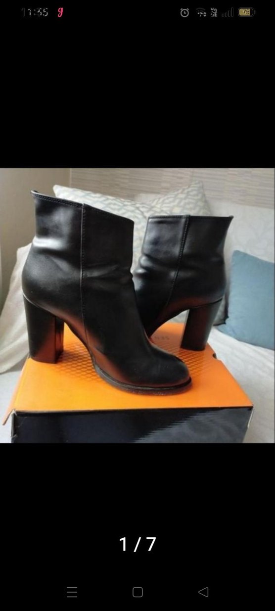 Siyah Deri Tokalı Topuklu Kadın Bot