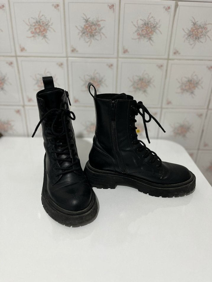 Siyah deri stiletto topuklu botlar, desen içermeyen şık tasarım. Günlük kullanım için rock punk tarzını yansıtır.