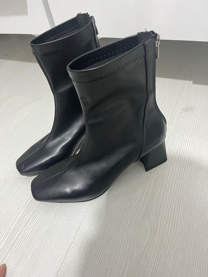 Siyah Deri Topuklu Kadın Bot