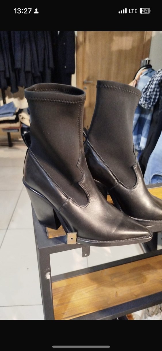 Siyah deri, tok topuklu ve tokalı kadın botları, sokak modası ve Paris esintisiyle günlük kullanım için uygun.