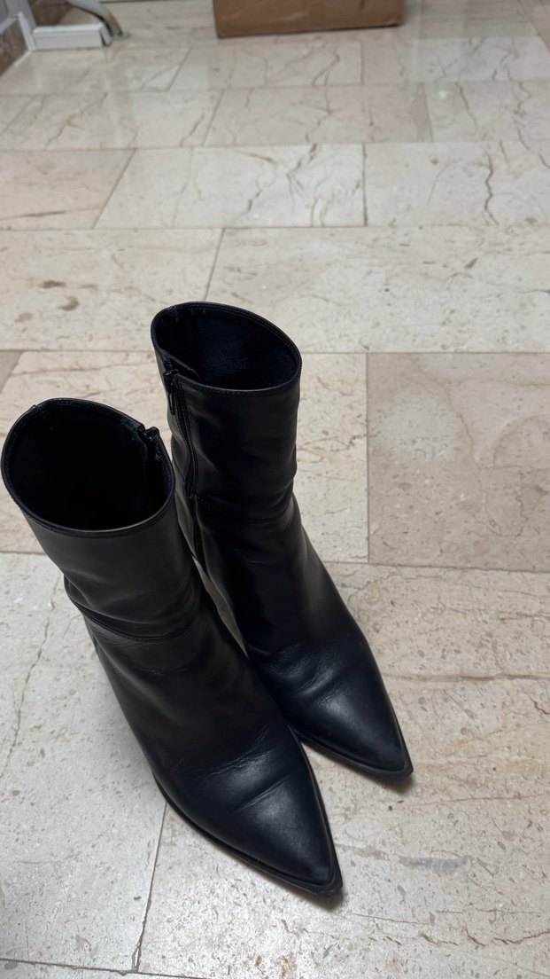 Siyah deri tokalı kadın botu, ince topuklu ve minimalist goth tarzında, cesur günlük kullanım için uygundur.