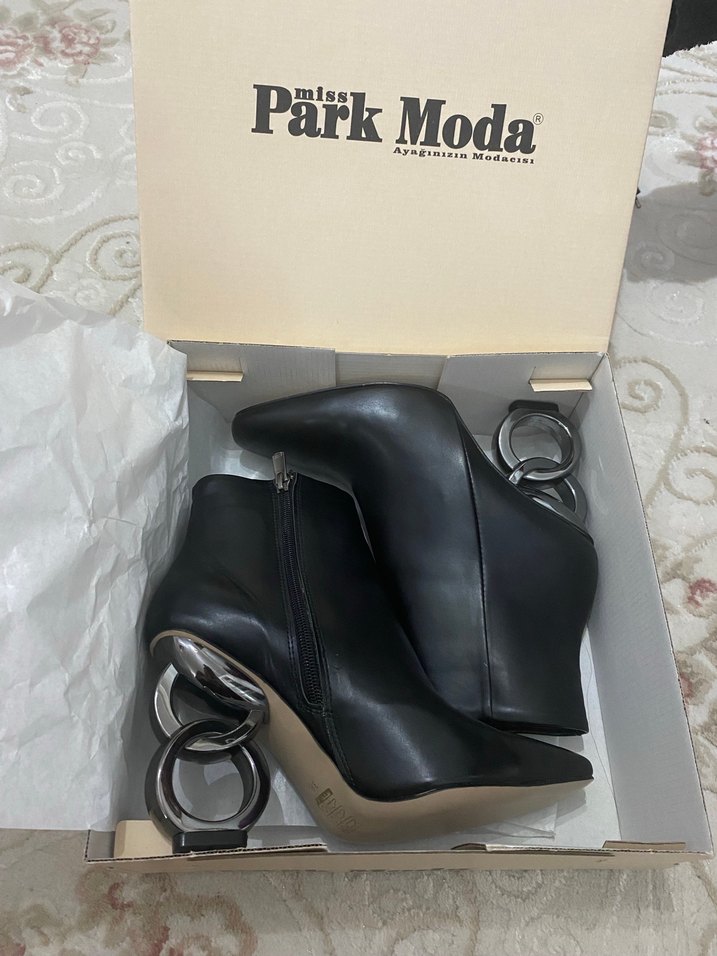 Park Moda'dan siyah deri kadın botlar, blok topuklu ve tokalı detaylara sahip. Ofis için uygun, yılan derisi desenli avangart tarzda.