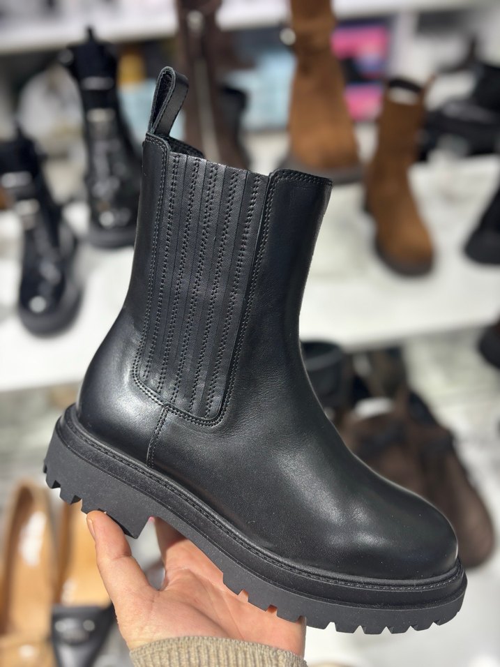 Siyah Deri Topuklu Kadın Bot