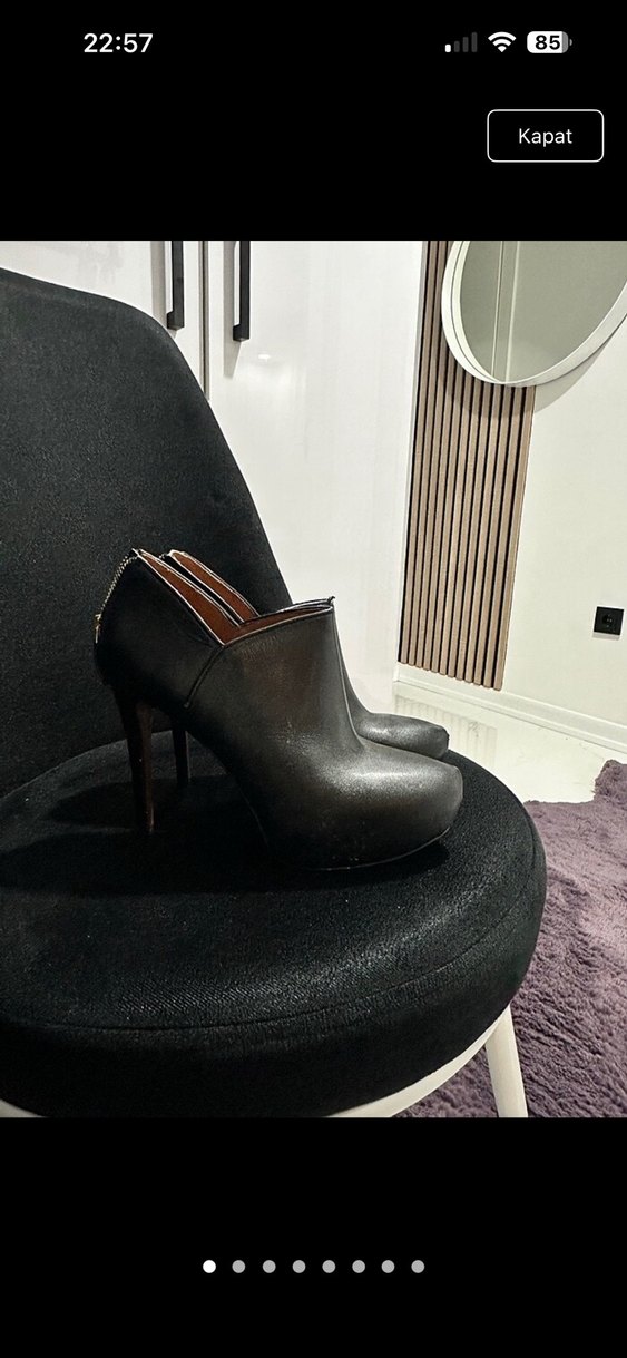 Siyah Deri Topuklu Kadın Bot