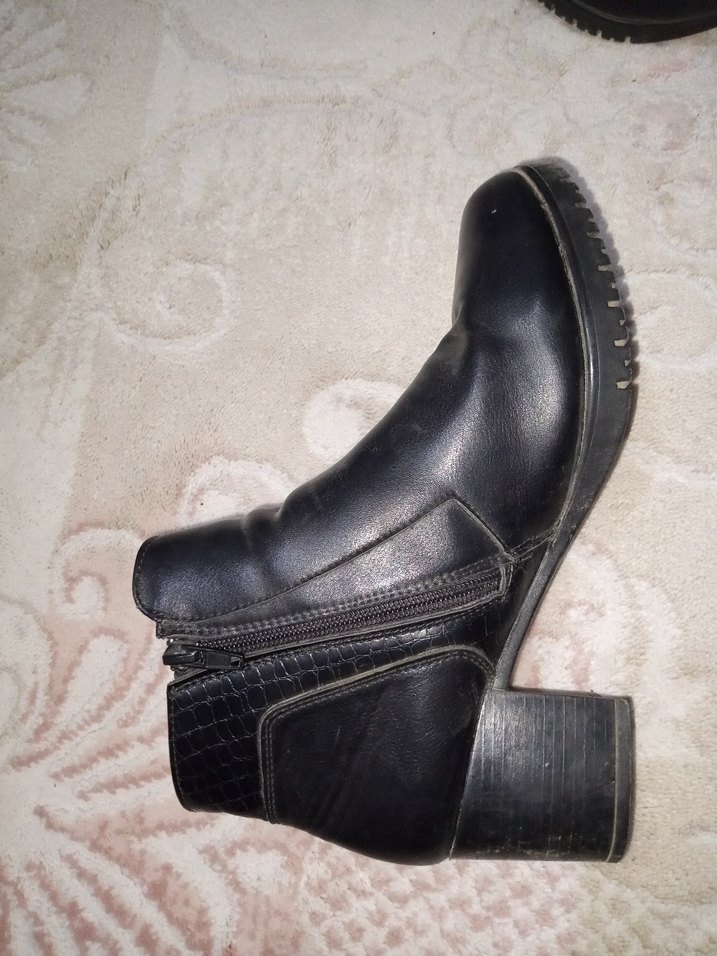 Siyah deri, blok topuklu kadın botları, kürk detaylıdır. Rahat ve gotik tarzda, günlük kullanıma uygundur, yan fermuarı vardır. Flodan gecen sene aldım