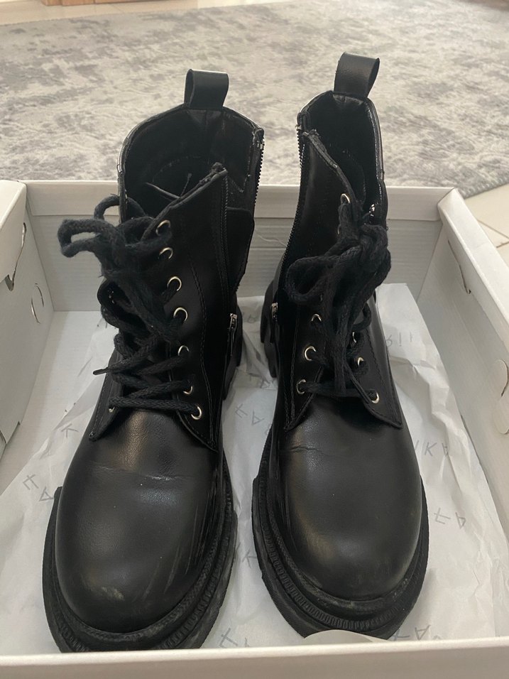 Marka temsilidir. Daxtors Siyah deri topuklu, tokalı kadın botları. Günlük kullanıma uygun, bağcıklı ve sade tasarımlı. Ürün 5 kere anca kullanıldı. Tertemiz fazla olduğu için satıyorum.
