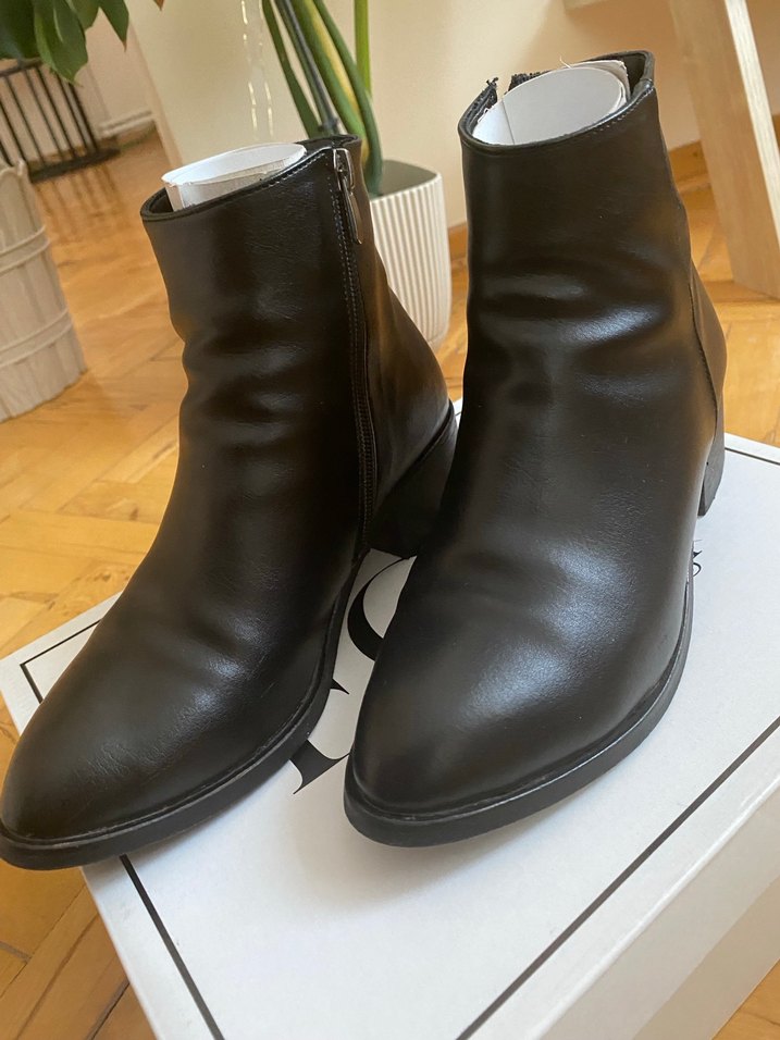 Siyah deri, tokalı, sivri burunlu topuklu kadın botu. Düz ve desen içermeyen, gotik tarzda günlük kullanıma uygun. 4-5 kez kullanıldı ,herhangi bir sorunu yoktur, başka model aldığım için bunu satıyorum #bot #deri #eceninbutiği #hotiç #zara #mango #defacto #koton