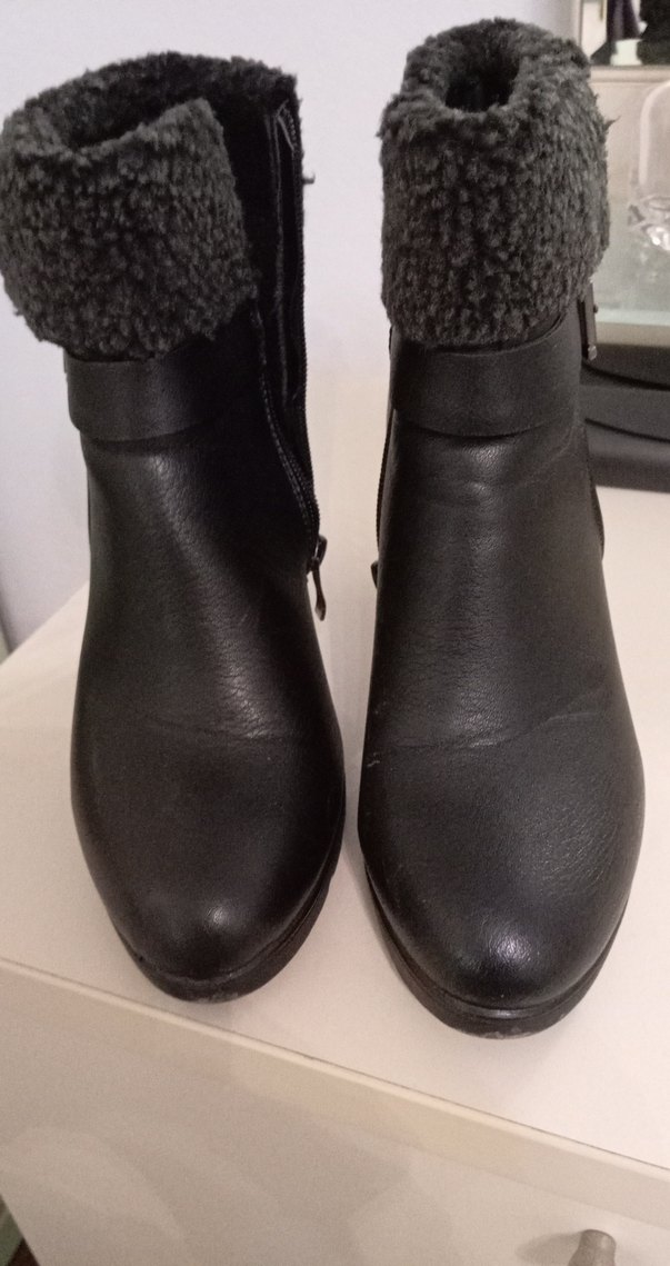 Siyah deri, dolgu topuklu botlar, tüylü detaylarla rahat ve gotik tarzı birleştirir.