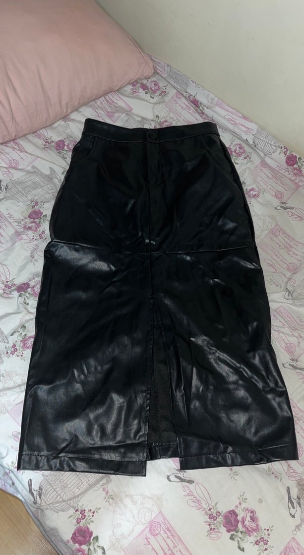 Siyah Deri Uzun Kadın Etek