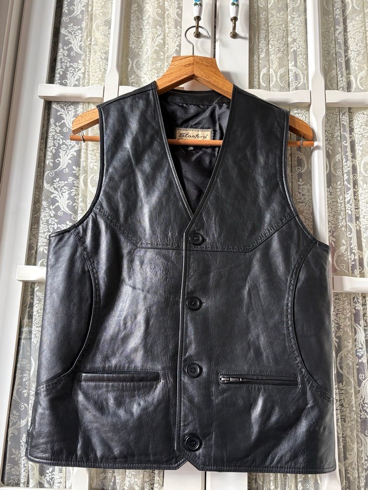 Ölçüleri Omuz: 37cm En: 50cm Boy: 67cm Stanford marka siyah deri yelek. Hiç giyilmedi zaten hiçbir kıvrımı olmamasından da anlayabilirsiniz. Ustanın ellerine sağlık işçiliği muazzam ama sahibi kilo aldığı için hiç giyemedi. Deriden anlayan değerini bilecektir. Düğmeli, siyah deri biker yelek. Kolsuz, normal boyda ve regular fit kesimle vintage tarzını yansıtıyor. Notch yakalıdır.