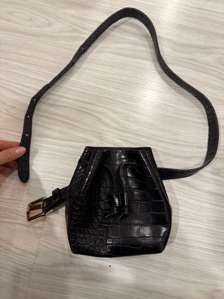 Siyah Deri Yılan Desenli Kadın Bel Çantası