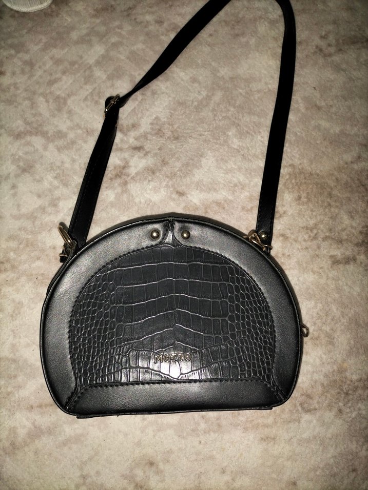 Siyah deri, yılan deseniyle süslenmiş, tokalı kayışlı kadın çantası. Parisian goth tarzını klasik şıklıkla buluşturur. Günlük kullanıma uygundur.