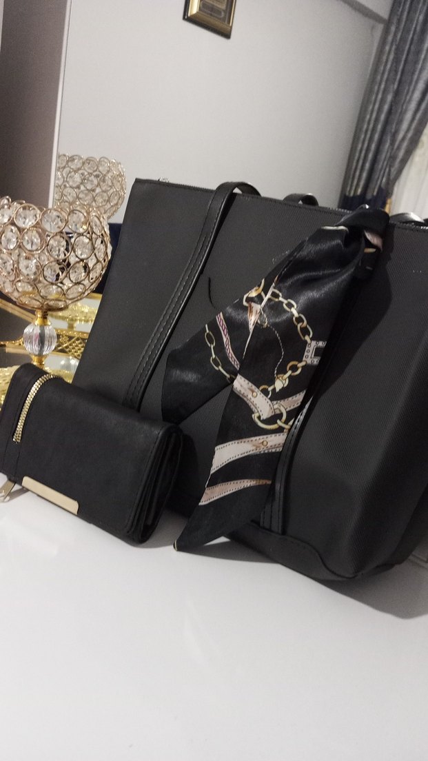 Siyah deri, yılan deseni ve tokalı detaylarıyla günlük kullanıma uygun, avant-garde tarza hitap eden kadın çantası. cuzdanla beraber