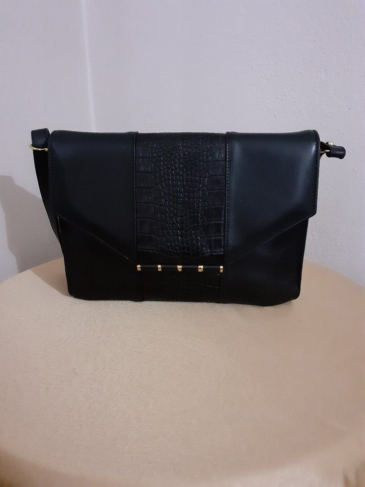 Siyah deri, yılan desenli ve tokalı kapaklı kadın çantası. Klasik zarafet ve gotik Paris tarzını birleştirir. Günlük kullanım için uygun. En:23cm , boy:33cm Bu fiyata kaçmaz!!