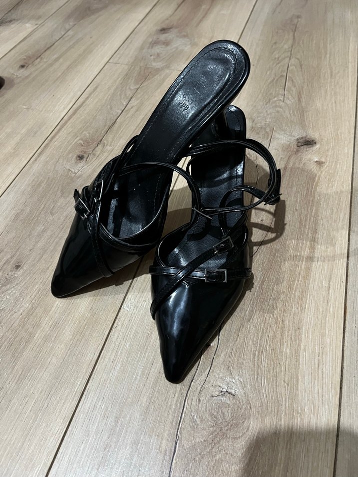 Siyah deri yılan desenli, tokalı stiletto topuklu ayakkabı, gotik ve şık tarz için ideal, romantik akşamlar için uygun.