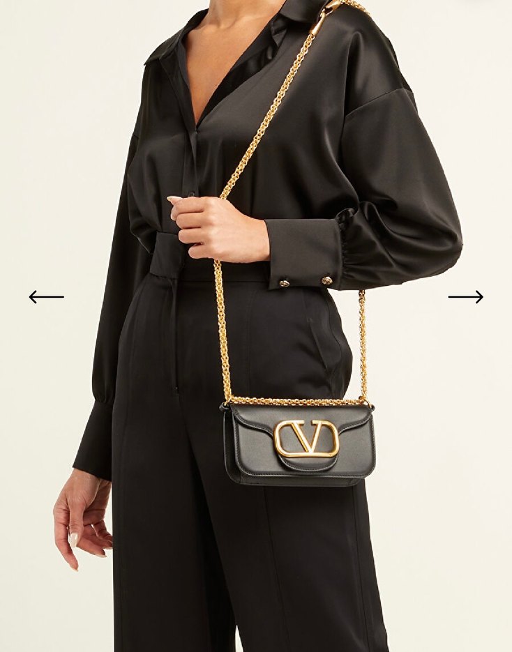 Siyah deri, kemerli ve altın zincir askılı kadın çanta. Minimalist ve cesur sokak stilini bir araya getirir. Ofis için uygun.