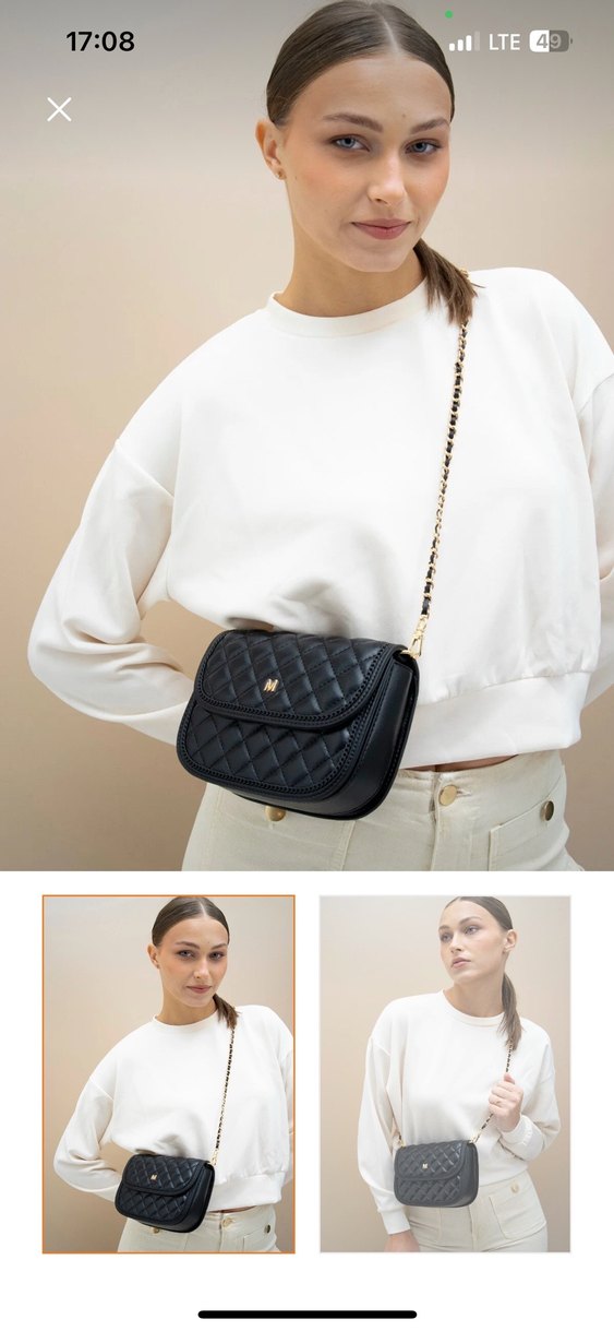 Marjin Siyah deri kadın çanta, kapak kısmında kapitone dikişli hiç kullanmadım zincir askısı günlük olarak kullanılabilir