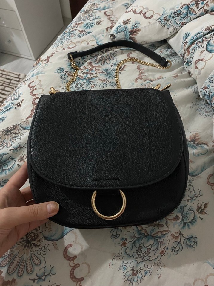 Siyah Deri Zincir Detaylı Kadın Çanta