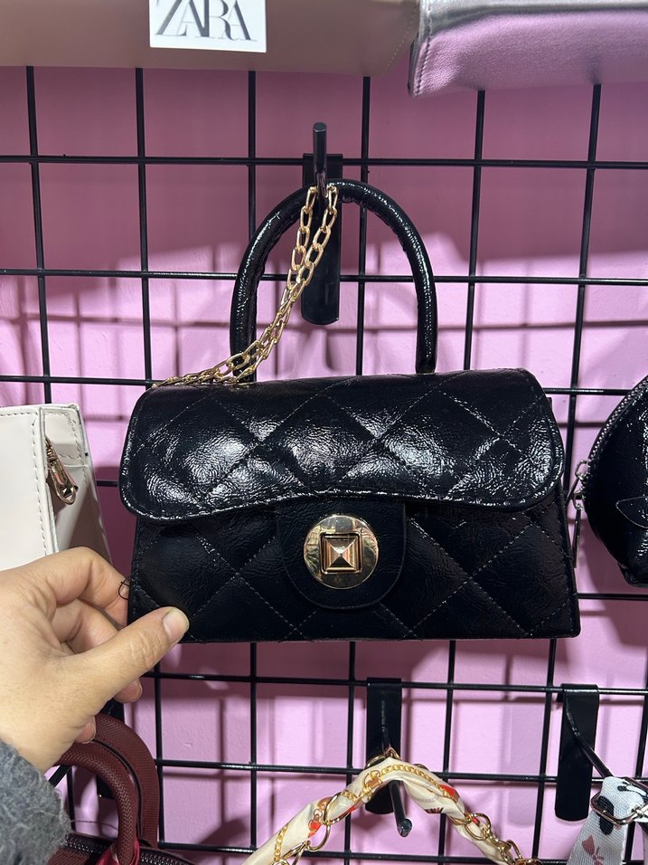 Siyah Deri Zincirli Kadın Çanta