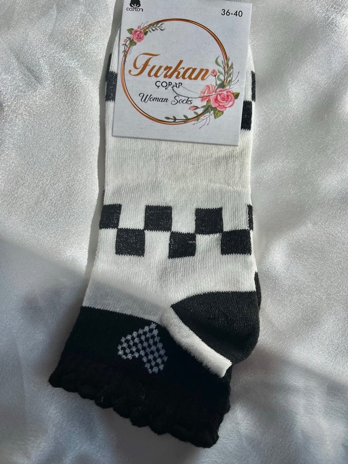 Siyah Desenli Beyaz çorap