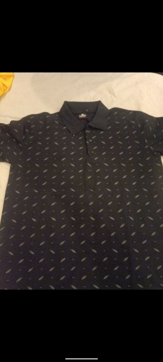 Bu erkek polo tişörtü koyu gri renkte, desenli ve düğmeli yakaya sahip. Kısa kollu, bol kesim ve günlük sokak stili için uygun.