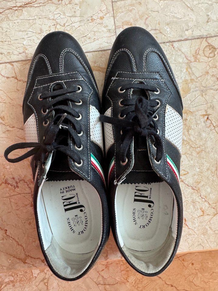 Delikli yanları ve renkli şerit detayları olan siyah gri erkek street wear ayakkabı. Klasik spor tarzına uygun rahatlık sağlar. 2 ya da 3 kez giyildi bazı kısımlarında hakiki deri mevcuttur