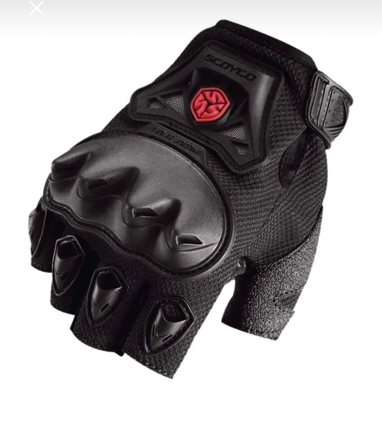 Desenli dokulu siyah biker eldiven, koruyucu parmak eklemi muhafazası ve ayarlanabilir bilek kayışı içerir. Rock punk tarzına uygun.