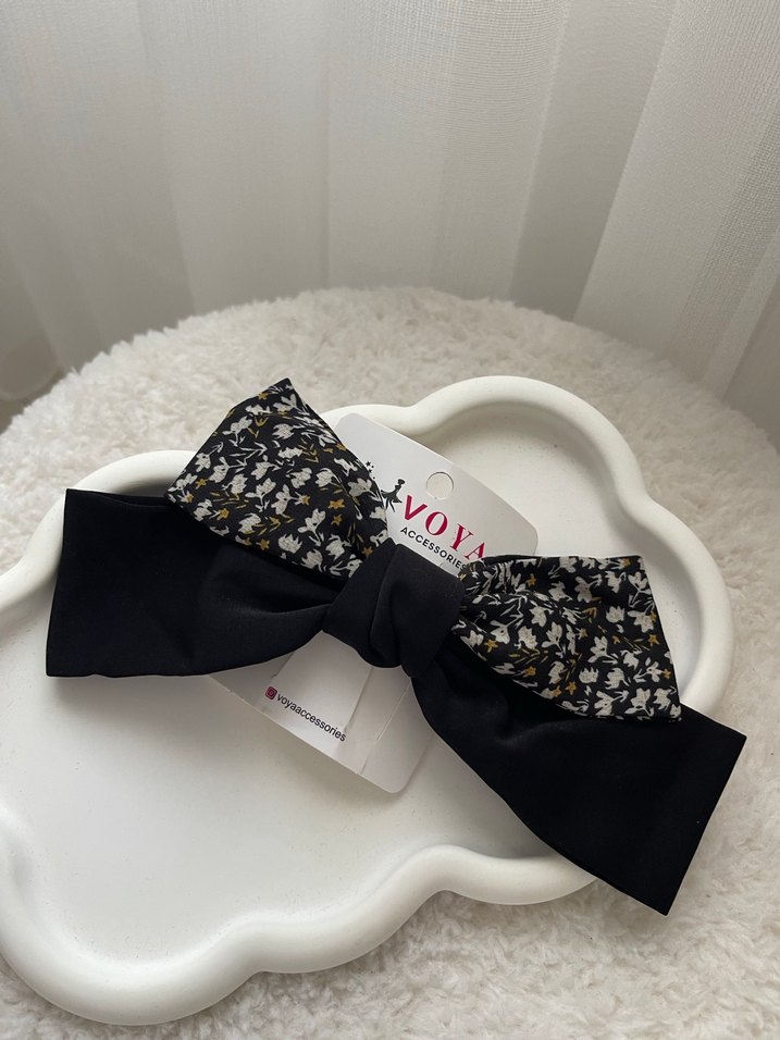 Kadınlar için siyah sentetik kumaştan, çiçek desenli fiyonk saç tokası. Sokak stili ve Paris etkisiyle trend belirleyicilere uygun. Adet fiyatıdır