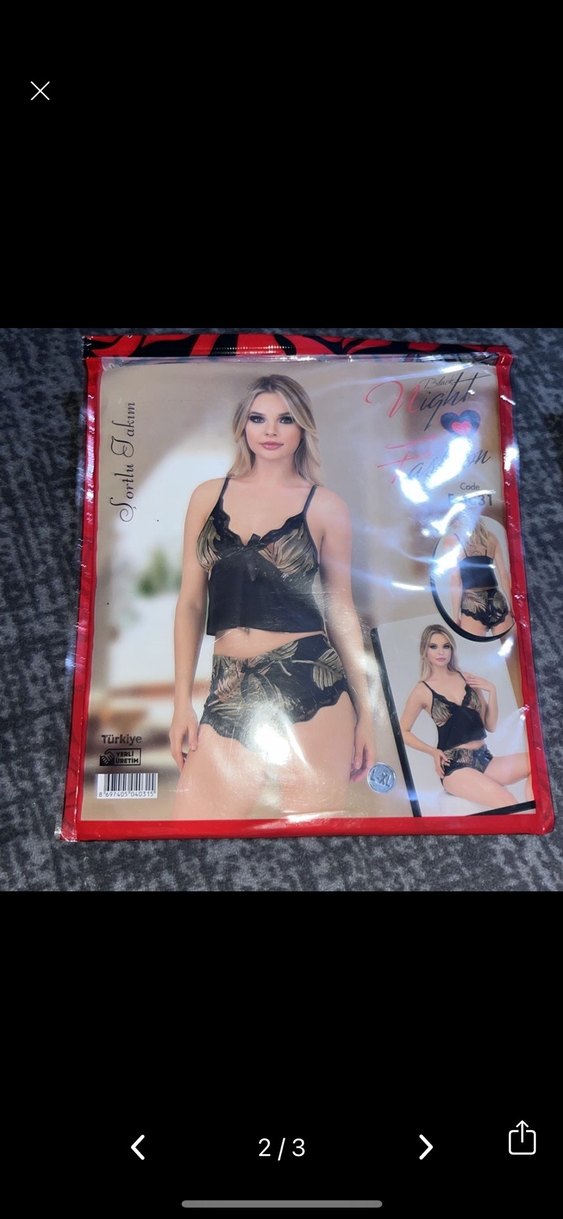Bu dar kesim kadın pijama takımı, kısa boy, askılı kollu ve koyu renkli desenli, rahat gotik tarzda. Siyah yaprak desenli üst ve şort içerir.