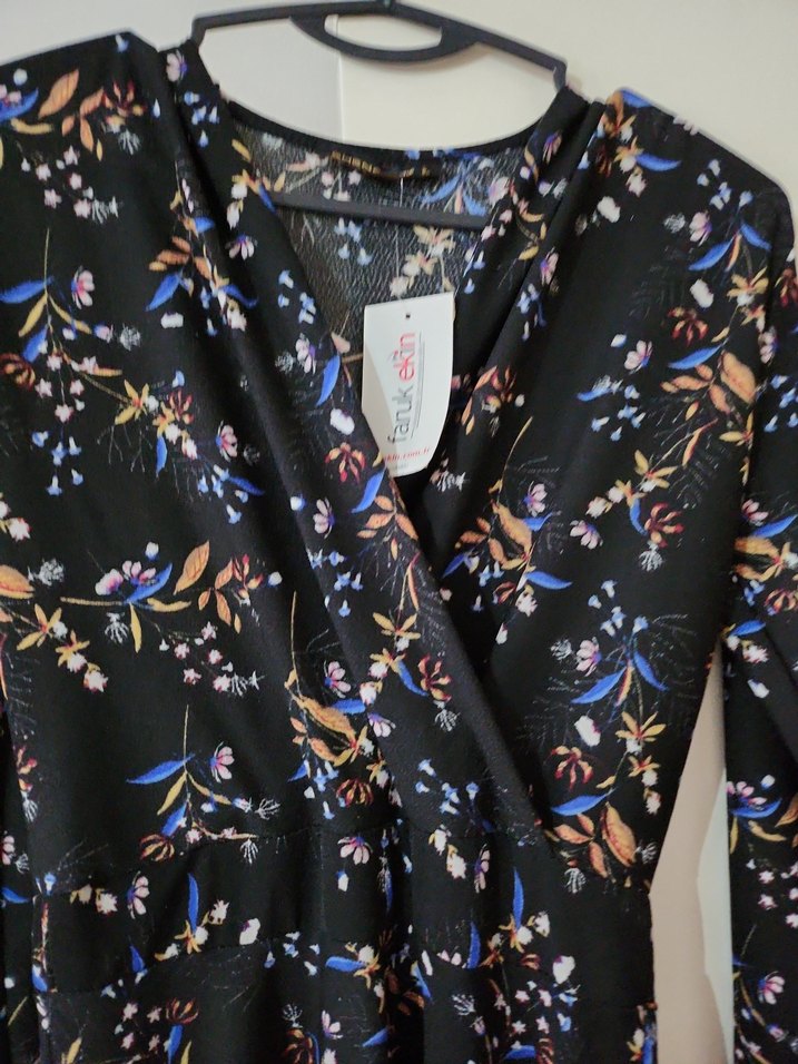 Siyah renkli, uzun kollu ve V yakalı ön kısmı ve bol kesimiyle rahat bir kullanım sunar. Renkli çiçek desenlidir, günlük sokak stiline uygundur.