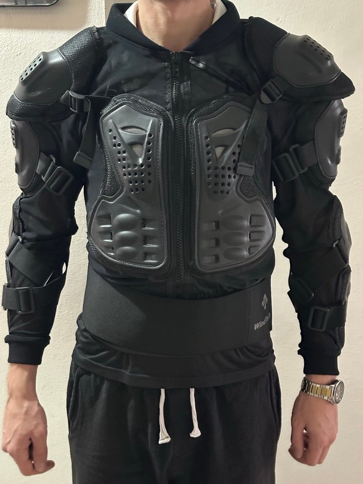 Sentetik kumaştan, ayarlanabilir kemerli siyah desenli motorcu . Koyu renkli, athleisure tarzda biker görünümü sunar. ️